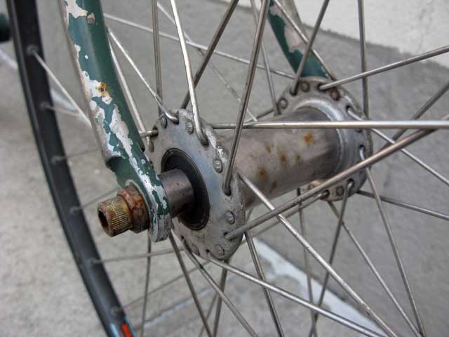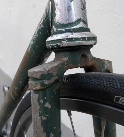 Nice patina of old steel, paint and chrome.
