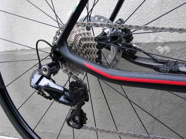 Equipped with Shimano's Ultegra Di2 electronic shifting and hydraulic disc brakes.