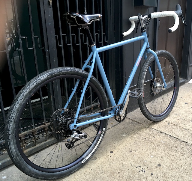 White Ind. 1X cranks, SRAM Hydro-R brakes, Rival derailleur, Panaracer GravelKing tires.