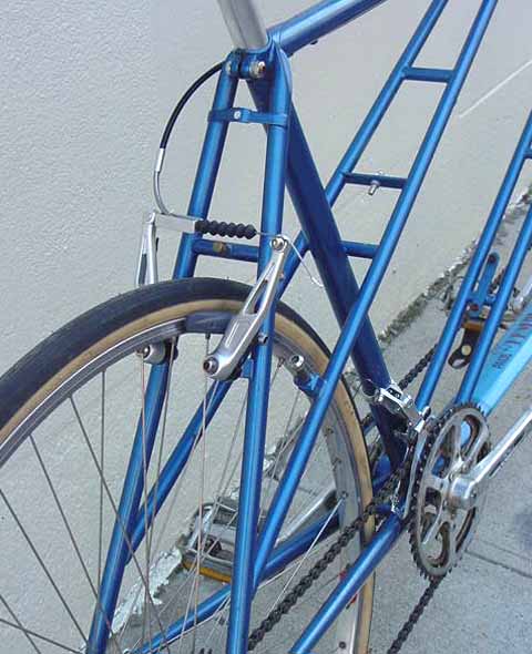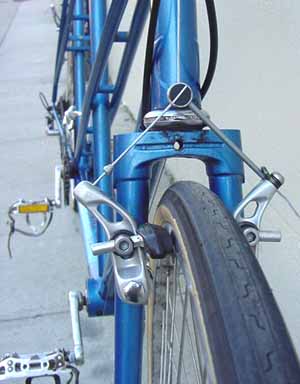 cantilever front, linear-pull rear brake, Phil Wood hubs, 48-spoke Super Champion rims.